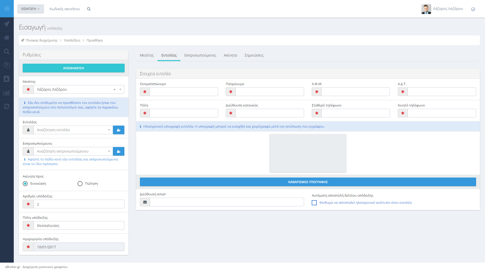 Η προαναφερθείσα λειτουργία έχει υλοποιηθεί στις ενέργειες των αναθέσεων, των υποδείξεων αλλά και κατά την πραγματοποίηση μίας ενοικίασης. Ομοίως το συμφωνητικό που συμπληρώνεται αυτόματα, αποστέλλεται και στα δύο εμπλεκόμενα πρόσωπα, ενώ παραμένει αποθηκευμένο στο αρχείο σας.